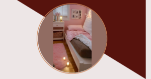The best part? It’s not just pretty – it’s practical too! There’s a handy little side table for your phone, a cute light, and even shelves for all your books and treasures. No more tripping over stuff! It’s the kind of room where you can actually be productive, too, whether that’s working on homework or just having some time to yourself. It’s the perfect blend of stylish and comfy – the ultimate dream room for anyone who loves cute things and cozy vibes!