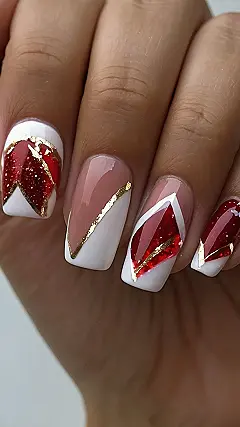 Forget reindeer, these nails are the real stars of the holiday season! The red and white combo screams Christmas cheer, and that little bit of gold adds a touch of elegance. They’re totally Instagram-worthy, and your friends will be so jealous they’ll start planning their own mani-pedi sessions right away. Plus, they’re perfect for sipping hot cocoa by the fireplace, or even for unwrapping presents (carefully, of course!).