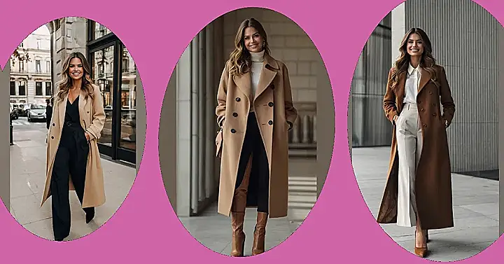 Hey there, fashion friends! November’s got that chilly vibe, but that doesn’t mean your style has to hibernate! This picture shows a super stylish outfit perfect for those cool autumn days. Imagine strolling down the street, feeling all warm and snug in that gorgeous camel-colored coat, while still looking totally put-together. It’s like a hug for your body and a boost for your confidence. Think cozy, but make it fashion! That cream-colored pantsuit underneath is the secret weapon – it’s effortlessly chic and comfy enough to wear all day long. Who needs sweatpants when you’ve got this?