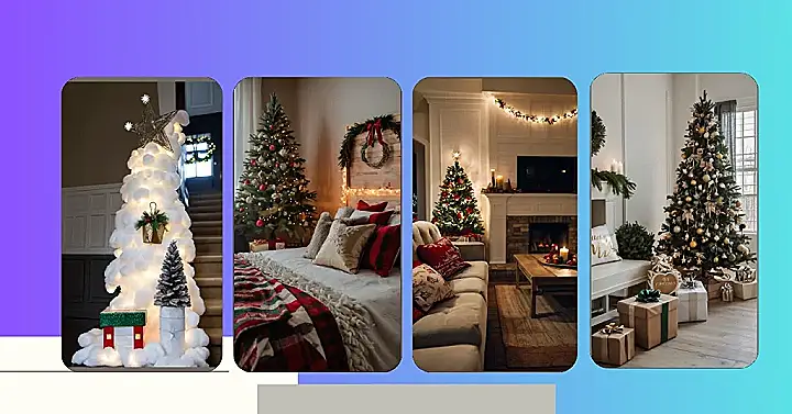 This picture is the definition of cozy Christmas vibes! You’ve got a beautiful Christmas tree with twinkling lights and sparkly ornaments, and stockings hung with care. Plus, the fireplace is crackling away, perfect for roasting marshmallows and telling silly Christmas stories. I bet the whole room smells like cinnamon and pine needles – seriously, the perfect atmosphere for getting into the holiday spirit!