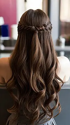 This hairstyle is like a dream come true for anyone who wants to look effortlessly chic. It’s a half-up, half-down style that’s perfect for a day at school, a date, or even a fancy dinner. The girl in the picture looks like she just stepped out of a magazine, with those gorgeous waves cascading down her back. And the best part? It’s a style that you can totally pull off, even if you’re not a hair-styling expert!