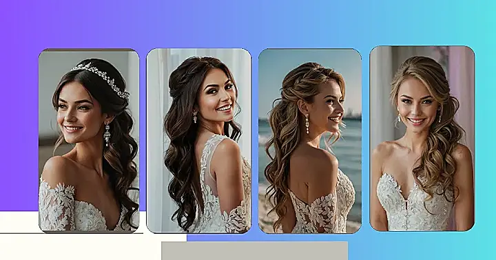 Now, if we talk about styles that are as easy as pie (and, yes, we love pie), don’t forget the half up half down braid! This is the ultimate blend of polish and whimsy. It’s especially delightful when paired with florals for that boho wedding aesthetic. Just imagine the stunning contrast of a neat braid contrasted with flowing loose curls cascading down your back, making you look like an effortless goddess as you sip on your champagne.
