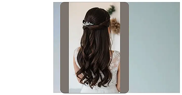 Imagine yourself walking down the aisle, your hair cascading down your back like a beautiful waterfall of curls, and the sparkle of the hairpiece catching the light of the winter sun. It’s a look that’s both classic and elegant, but also has a touch of fun and whimsy that’s perfect for a winter wedding. And who knows, maybe you’ll even get some compliments on how effortlessly chic you look!