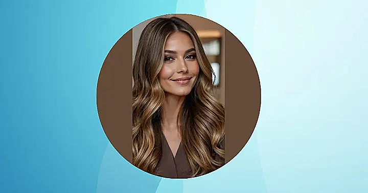 The picture shows a beautiful woman with long, flowing locks. It looks like she just stepped out of a salon, with her hair perfectly styled. This isn’t your average boring brown, though! It’s got a touch of blonde in there, making it what’s called “bronde.” And guess what? The color isn’t just one solid shade. It’s got this cool, trendy “balayage” technique where the hair is painted with different shades of bronde, making it look like sunshine is dancing in her hair. Seriously, it’s like she’s got a built-in spotlight!