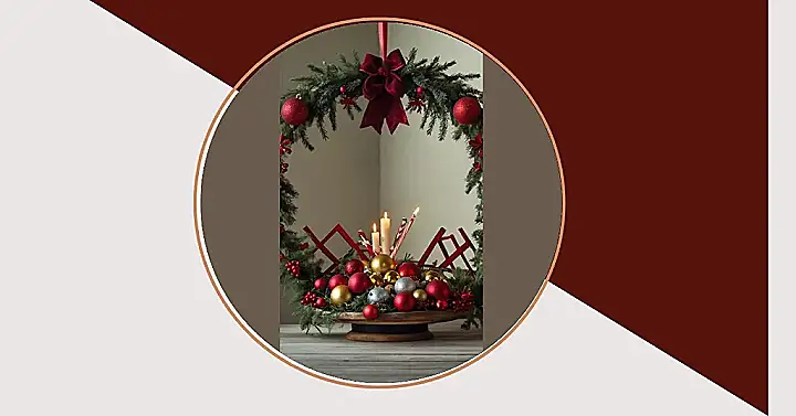 Forget the giant tree – who needs it when you can create a dazzling, space-saving Christmas display like this? This gorgeous half-wreath, dripping with festive red and gold baubles, makes a statement without taking over your entire apartment. Imagine the ‘oohs’ and ‘aahs’ from your friends as they enter, completely wowed by your miniature Christmas wonderland! The candles add a touch of cozy magic, turning your small space into a festive haven. It’s like a tiny, elegant party just waiting to happen!
