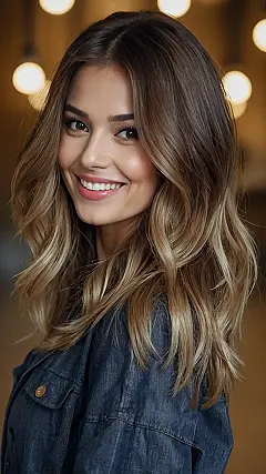 This girl’s hair is like a delicious sundae with chocolate and vanilla swirls! It’s called “bronde,” which is like a fancy word for brown and blonde mixed together. Imagine a warm, summer day, you’re at the beach, and your hair is catching the sunlight just right. That’s what bronde hair looks like! It’s like a mix of your favorite brown shades and the sun-kissed blonde that everyone wants.