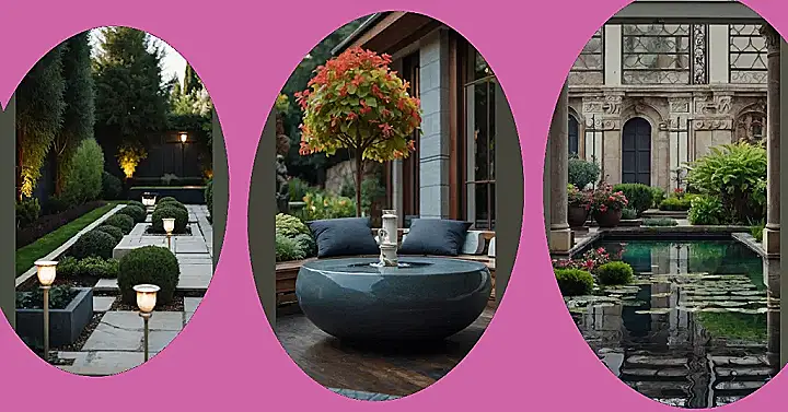 This garden is like a fancy party for your eyes! It’s all about the little details: perfectly shaped bushes that look like they’re wearing tiny hats, fancy lamps that glow softly, and a pathway that whispers “come on in, let’s have a good time.” It’s the kind of place where you can sip lemonade in a fancy dress, even if it’s just a pretend one in your imagination.