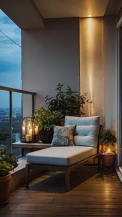 Imagine you’re chilling on your balcony, but instead of just staring at the boring old city, you’ve got a comfy lounge chair, some cute plants, and some flickering candles. That’s exactly what this picture shows! It’s like someone took a slice of peaceful backyard and plopped it right up in the sky. Who needs a fancy vacation when you can have this? It’s the perfect place to relax, grab a good book, and escape the hustle and bustle of everyday life.