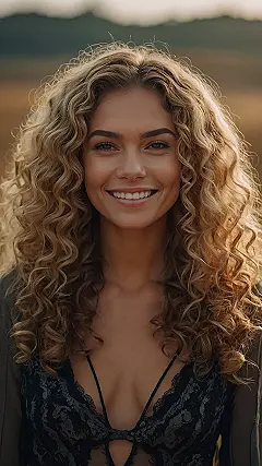 The woman in this photo rocks some serious curls! Her hair looks like it’s got a life of its own, bouncing and swirling with personality. You might think that styling curly hair would be a total nightmare, but she makes it look effortless. It’s like she woke up, shook her head, and BAM! Perfect curls. She’s totally got that “I woke up like this” vibe going on, and it’s seriously inspiring.