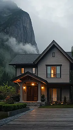 This house is giving major “cabin in the woods” vibes! It’s like something straight out of a fairytale, with its warm wood exterior and charming stone accents. The large windows let in tons of light, making it feel super cozy and inviting. It’s the perfect place to escape from the hustle and bustle of everyday life, curl up with a good book, and just relax!