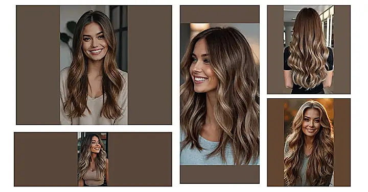 This picture is like looking into a magazine! The girl in the photo has those super-long, gorgeous waves. Her hair is a perfect blend of brown and blonde, kind of like a chocolate chip cookie with some sprinkles. It’s the kind of hair that makes you wish you could just run your fingers through it.