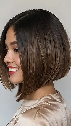 That’s one seriously chic bob! This isn’t your grandma’s bob—it’s modern, stylish, and totally makes a statement. Imagine walking into school with hair this glossy and smooth; everyone would be asking where you got it done! It’s the perfect blend of classy and cool, and it would look awesome whether you’re heading to class, hanging out with friends, or even acing that big math test (good hair always helps with confidence, right?).