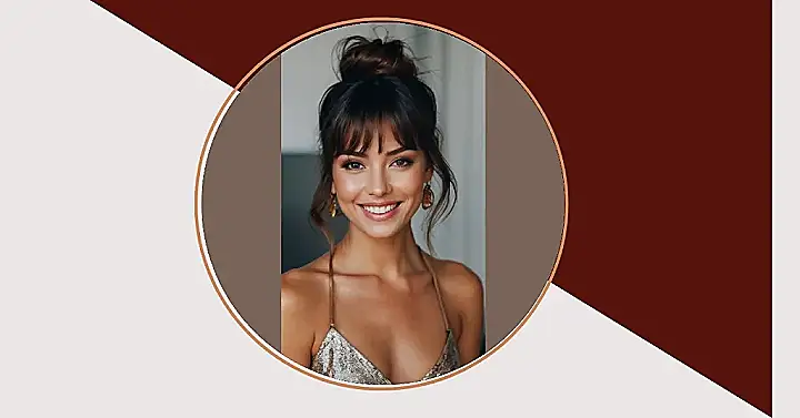 This girl’s got it going on! She’s rocking a messy bun that’s so effortlessly cool, it makes you want to grab a hair tie and try it yourself. But wait, there’s more! Those bangs are totally on point, framing her face perfectly. She looks like she’s ready for anything, from a casual day out to a fancy party. Seriously, who needs a tiara when you have hair this awesome?