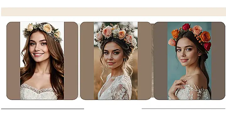 The versatility of flower crowns allows for so much creativity. You can style them for a romantic half-up look or a chic updo, all while seamlessly incorporating a veil. It’s like mixing your favorite bouquet and planting it in your hair—nature’s masterpiece completed!