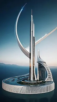 This building looks like it was designed by a futuristic architect who had a little too much coffee! It’s so tall and thin, it’s almost like a giant, elegant pencil sticking out of the water. The curvy, swirly parts on the sides are like something you’d see in a movie about space travel, kind of like a spaceship docking station. Imagine the view from up there! You’d see for miles and miles, and maybe even a few spaceships flying around.