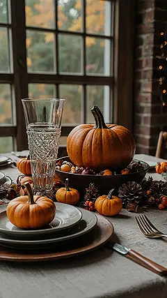 Even if you’re not having a big Thanksgiving dinner, you can still bring some of that fall magic to your own table. You could even use real pumpkins as your centerpiece, like they did in the picture. Or, maybe just grab a couple of mini pumpkins and put them on your plates, it’s all about personalizing your space and having fun! So get creative, and let your inner fall enthusiast shine!