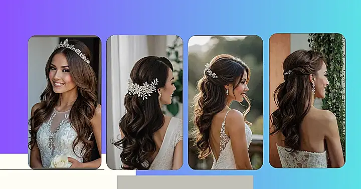 Half-up styles are making a strong comeback and for a good reason; they blend the best of both worlds! Imagine rocking a gorgeous veil cascading down while the top section of your hair is elegantly pinned up. It’s the kind of look that says, “I’m classy, but I can party too!” It provides just the right amount of sophistication paired with a laid-back vibe, making it perfect for any wedding theme.