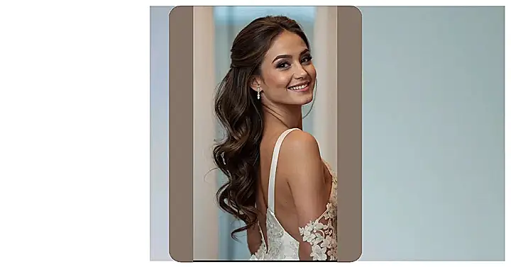 This hairdo is like a fairy tale come to life! It’s got all the dreamy vibes of a princess ready to walk down the aisle. Look at those gorgeous curls, they’re totally rocking that romantic look! And that sparkly hairpiece is like a crown for a queen! It’s not too over the top, but it definitely adds that touch of magic that makes you feel like you’re on top of the world. Plus, it’s super versatile—you can totally wear this style to a fancy party or even just a casual dinner date. It’s all about feeling your best, and this look will have you shining brighter than any diamond!
