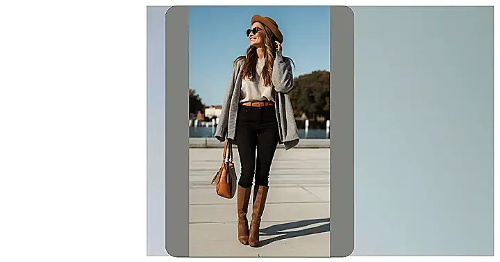 This outfit is basically saying, “Hey, fall, I’m ready for you!” with a big smile and a killer coat. It’s the perfect mix of comfy and chic, with those jeans and a cozy turtleneck. And let’s not forget the amazing boots! They’re like the cherry on top of this fashion sundae. The whole look screams “I’m not afraid to embrace the cooler weather” and “I’m gonna look amazing doing it.”
