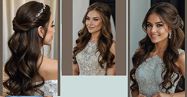 Planning your big day? Let’s talk hair! If you’ve got long locks, then get ready to be inspired. This hairstyle is like a party in the front with those cute braids, and a chill zone in the back with those glamorous waves. Plus, that sparkly hair accessory? Total showstopper! It’s the perfect balance of fancy and fun, without looking like you’re trying too hard.