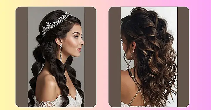 This hairstyle is like the fashion equivalent of that one song everyone knows and loves – it’s a classic for a reason! Check out those effortless waves and that super-sparkly headpiece! It’s the kind of look that’s been making people say “wow” for ages, and it’ll keep doing just that. You could totally rock this at prom, a wedding, or even just when you’re feeling fancy grabbing pizza with friends.
