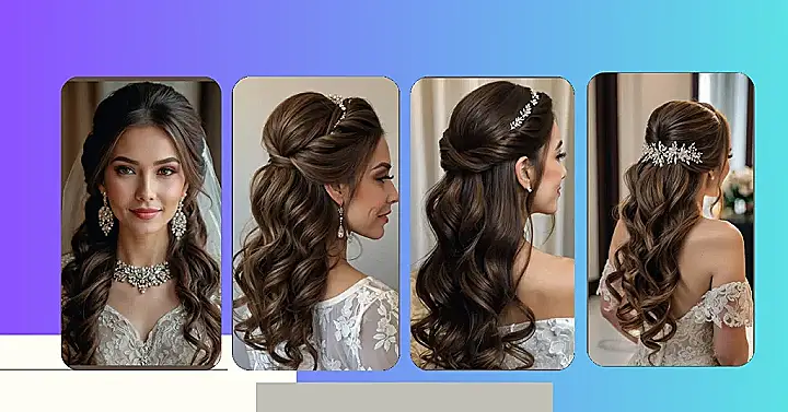Planning your big day? Let’s talk hair! If you’ve got long locks, then get ready to be inspired. This hairstyle is like a party in the front with those cute braids, and a chill zone in the back with those glamorous waves. Plus, that sparkly hair accessory? Total showstopper! It’s the perfect balance of fancy and fun, without looking like you’re trying too hard.
