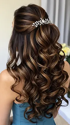 Imagine yourself rocking this at a wedding; you’d be like a real-life princess. With a few perfectly placed curls and that gorgeous hairpiece, you’ll definitely be turning heads (even if the bride is supposed to be the main attraction… whoops!). Just be prepared for everyone to ask you who did your hair, because they’re gonna want to copy your stunning look for prom, graduation, or maybe even *their* own wedding!