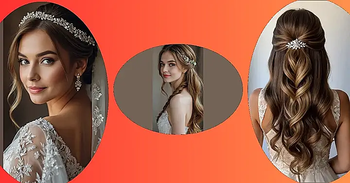 Planning your summer wedding ‘do and want to look amazing without melting? This hairstyle is like the best of both worlds! It’s fancy enough to impress your grandma but still lets your hair breathe in that summer heat. Plus, that sparkly headband? Total queen vibes. It’s like, you’re a princess getting married, but also ready to dance the night away without your hair sticking to your neck.