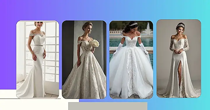 Dreaming of your big day? Well, check out this gown! It’s like someone took a cloud, added some fancy lace, and said, “Yep, this is totally bride material.” It looks super comfy for dancing the night away, even if your clumsy cousin steps on the train. And those off-the-shoulder sleeves? Totally Instagram-worthy.