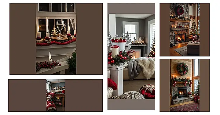 This picture screams “Christmas time!” It’s like a comfy, cozy living room straight out of a holiday movie. The red ornaments and the flickering candlelight make it feel extra special, and the fluffy blankets and pillows look super inviting. It’s a perfect spot to cuddle up with a hot chocolate and some holiday tunes. Can’t you just imagine yourself snuggled in with a good book or a holiday classic movie, with the fire roaring in the fireplace? The fireplace is so inviting! It makes you want to grab some marshmallows and roast them.