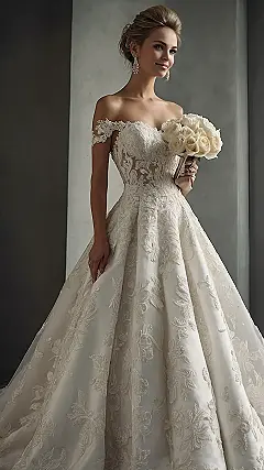 Planning your dream wedding? Well, buckle up, because this gown is pure magic! Just imagine floating down the aisle in this beauty. With its intricate lace and elegant off-the-shoulder design, it’s like something straight out of a fairy tale. All you need now is a prince charming and maybe a really good playlist for the reception.