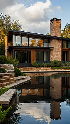 Seriously, though, check out that awesome chimney! It’s like the house is wearing a stylish, stone hat. And the landscaping? It’s not just grass – it’s a carefully curated oasis of calm. Think of all the epic backyard hangouts you could have here, complete with a super cool, almost magical, reflection of your amazing pad in the pool! It’s basically a built-in selfie backdrop. This isn’t just a house; it’s a statement. It’s a feeling. It’s… pure awesome.