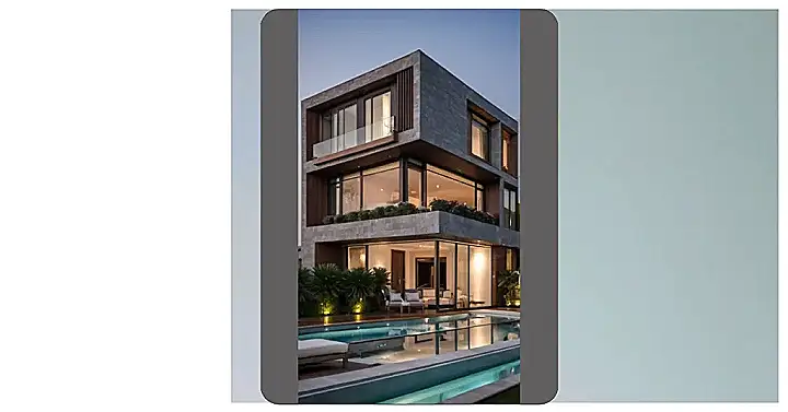 This isn’t your grandma’s house plan! Just look at this amazing luxury residential house; it’s like something out of a movie. Imagine lounging on those comfy-looking chairs by the sparkling pool, sipping lemonade (or something fancier, if you’re feeling grown-up). The clean white lines and huge windows make it feel super modern and spacious, perfect for showing off your awesome LEGO collection or having a sleepover with all your friends. This place screams “summer vacation,” even if it’s only October!