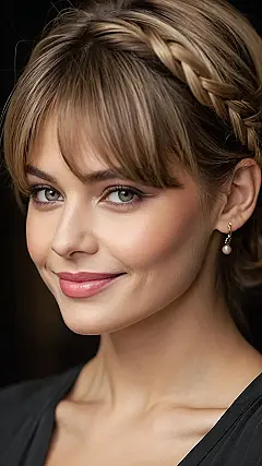 That haircut is like a secret weapon for looking amazing! Seriously, those bangs are perfectly framing her face, making her eyes pop like fireworks on the Fourth of July. And did you notice that braid? It’s like the hairstyle equivalent of a plot twist in your favorite TV show – totally unexpected but totally works!
