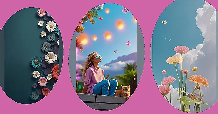 That sky view is absolutely nuts – floating flowers and those glowing lantern things! It’s like a secret garden party happening way up high, complete with mountains in the distance looking all dramatic. This background is basically begging to be your new phone screen, adding a splash of magic and a whole lot of color every time you glance at it. It’s the kind of cute wallpaper photo that makes you feel a little bit happier, and maybe wonder if your own cat could learn to levitate snacks.