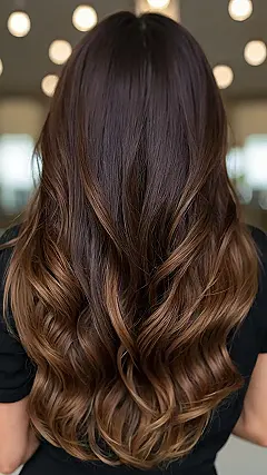 Wow, just look at that hair! It’s like a chocolate waterfall, all luscious waves and shimmery highlights. Seriously, it’s so gorgeous you could almost eat it (but please don’t!). I bet whoever owns this head of hair turns heads wherever they go, maybe even causing a small stampede of admiring onlookers. It’s the kind of hair that makes you want to run your fingers through it (if only you were allowed!) and ask for the stylist’s number.
