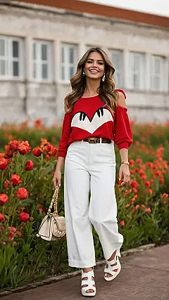 Seriously, though, this outfit is perfect for a day of exploring. Think of all the amazing Insta pics you could take! Red and white is such a classic combo, and the little details like the belt and the bag add a touch of glam without being over-the-top. Plus, those shoes are *amazing*. You’ll be turning heads while seeing all the sights, proving that comfy and cool can definitely coexist, even in a city as vibrant as Istanbul.