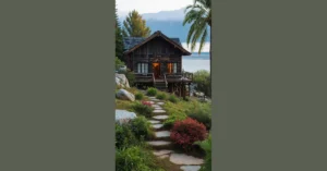 Imagine this: you’re chilling on a deck, the sun dipping below the trees, painting the sky in amazing colours. This isn’t just any house; it’s a beautiful country home straight out of a fairytale, nestled beside a crystal-clear lake so calm it’s like glass. The reflection of the warm, cozy lights inside makes it look like two houses, one real and one magical! It’s the perfect spot to roast marshmallows, tell spooky stories, and maybe even spot a friendly deer sneaking through the woods. Seriously, who wouldn’t want to live here?