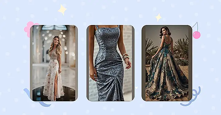 This dress is seriously serving major “classy evening party” vibes, even though it seems to have accidentally booked a photo shoot in the middle of nowhere that looks like a desert. It’s the kind of gown that probably has its own security detail and refuses to fly economy. Just look at that amazing floral pattern and the way it flows! Wearing this, you’d definitely turn heads, maybe even the local wildlife would stop and stare, wondering if they accidentally RSVP’d to a gala instead of finding water. This is peak ‘evening party dress classy,’ proving you can be fabulous anywhere, even if your plus-one is a cactus.