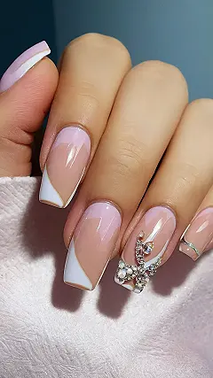 These nails scream “my dad owns a yacht club,” but in a totally cute way. The French tip with a twist gives off major “I summer in the Hamptons” vibes, and that little bit of bling? Chef’s kiss! It’s like saying, “Yeah, I could buy a small island, but I’m gonna treat myself to a fancy latte instead.”