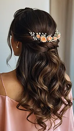 Planning your wedding hair can be just as stressful as trying to find a prom date, but let’s be real, this hairstyle is definitely a winner! It’s like, sophisticated but still totally chill, you know? Those soft curls cascading down are perfect for dancing the night away, and the flower and blingy clip? Total princess vibes! You can even say “I woke up like this” and get away with it…okay, maybe with a little help from a stylist.