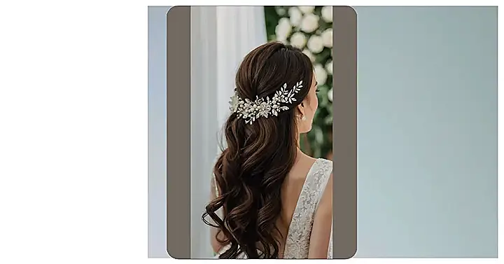 Getting married? Don’t want to choose between an updo and letting your hair flow? This half-up style is like the best of both worlds, kind of like having pizza and ice cream. It’s perfect for showing off your beautiful dress while still letting your hair do its thing. Plus, that sparkly accessory is like the ultimate hair bling, making you look like a total queen on your big day!