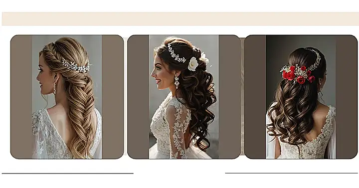 So, you’re getting ready to tie the knot? Or maybe you’re just dreaming of the perfect prom look? Well, check out this gorgeous wedding hairstyle! It’s like the fairy-tale version of a half-updo, and that sparkly headband makes it look like you caught a unicorn and turned its horn into jewelry. Plus, those waves? Total mermaid vibes.