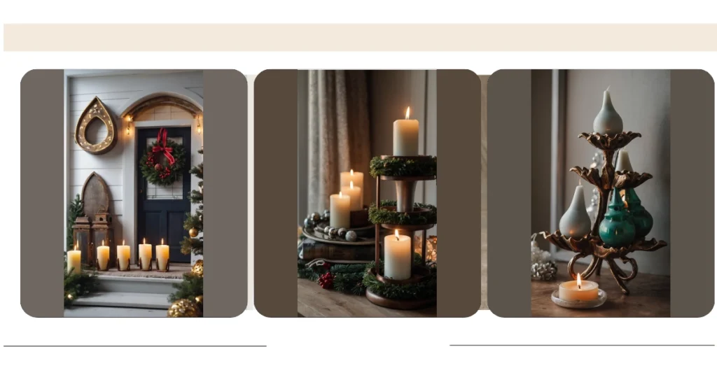 And speaking of festive vibes, look at all those adorable ornaments and greenery surrounding the candle holders. It’s like a mini Christmas village exploded onto your tabletop! It’s the perfect blend of rustic charm and modern elegance, and you can easily imagine it sparking happy conversations and joyful moments throughout the holiday season. Who needs a fireplace when you’ve got this gorgeous candle holder spreading warmth and cheer?