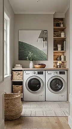 Seriously, look at those shelves! They’re not just crammed with detergent and dryer sheets. They’re like a carefully curated art exhibit of clean-smelling essentials. And the baskets! Everything looks so naturally perfect. Now, if they could just invent a machine that also folds the clothes, *then* we’re talking peak laundry perfection.