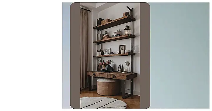 And get this: That desk-and-footstool combo is the definition of budget-friendly elegance. The rustic wood gives it that high-end farmhouse vibe without costing a fortune. It’s practical, too—perfect for studying, doing homework, or just chilling with a good book. The fluffy footstool adds a pop of texture and makes the whole space feel super inviting, proving you don’t need to spend a billion dollars to achieve luxurious comfort in your home!