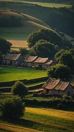 Seriously, picture this: no buzzing traffic, just birds chirping and maybe the occasional sheep baa-ing hello. The hills are so gently curved, you could probably roll down them without getting hurt (though maybe don’t try it, just in case). And those golden fields? They look like they’re made of sunshine and deliciousness – maybe they even smell like freshly baked bread! This photo is the perfect definition of “beautiful villages nature photo,” don’t you think?