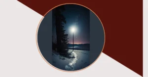 This picture is like stepping into a fairytale! Imagine yourself strolling down a magical path, framed by two giant trees that have formed a perfect circle, like a secret portal to a peaceful place. The sky is on fire with an amazing sunset, all oranges and purples, and it looks like tiny sparkly things are hanging from the trees – maybe it’s fairy dust, who knows? It’s the kind of view that makes you want to grab your best friend, a comfy blanket, and some hot chocolate, just to chill and soak up the peaceful vibes.