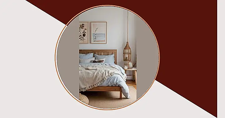 Isn’t this the kind of room where you’d write a song or finally finish that book you’ve been putting off? It’s got that cozy, beachy vibe, like a super chill place where even your worries would take a vacation. The wooden bed and those soft blue sheets are calling my name, and that hanging lamp looks like something a very stylish bird would build. I can almost smell the calming candle burning!