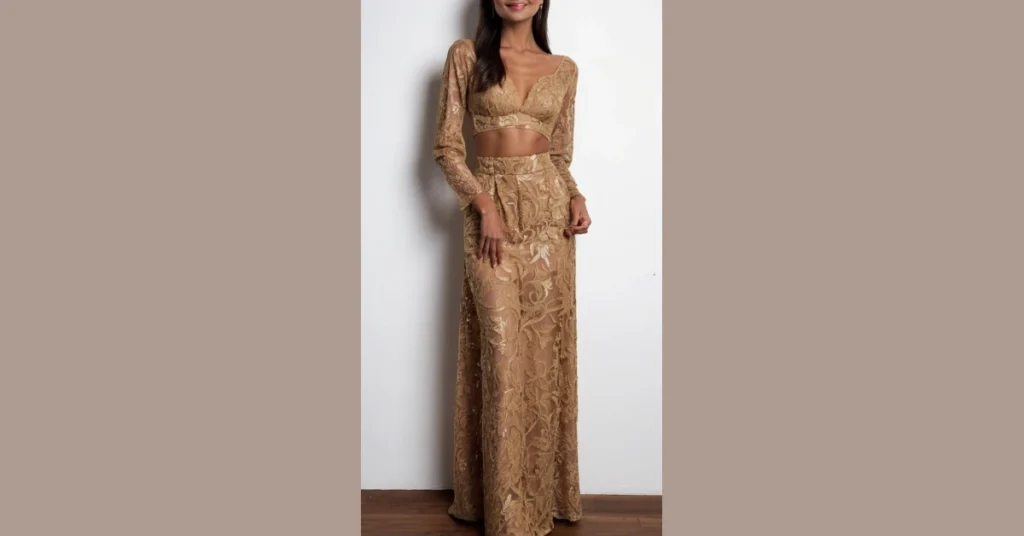 This outfit is perfect if you’re tired of the same old dress routine. Pants that look like a skirt? It’s like a fashion optical illusion! It’s giving major “I’m important and fabulous but also comfy” vibes. So ditch the usual princess gowns and prepare to wow everyone with this unique, breezy, and super stylish fancy dress idea.